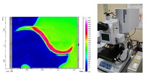 線虫の赤外イメージ(左)と赤外顕微鏡(右) |